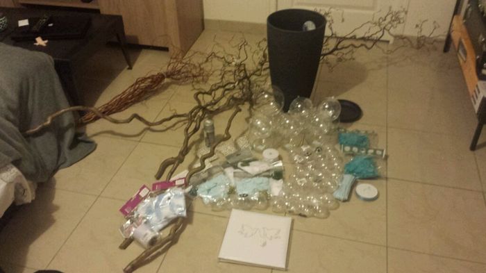 Bonsoir à tous/toutes, Je vous fait partager mes achats à Floralux avec mon chéri. Nous en avons eu pour 137 euros pour : 45 contenant a dragées (1,75EUR pour 4 boules 6 cm) ou 0,50 cts pièce, nos centres de table, le livre d'or, l'arbre â dragée...