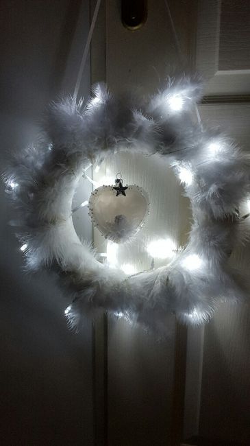 Il me restait des cercles en polystyrène non utilisés pour la déco du coup petit diy avec guirlandes à Leds qu'en pensez vous ? Je pense que ce sera le dernier à j-25 hihi bises les filles