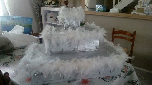 Hello voici notre présentoir pour le candy bar ou nous mettrons les bonbonnière entièrement fait par belle maman ça fait plaisir