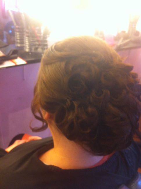Voilà mon essai coiffure réaliser ce matin assez concluant juste je souhaiterais le chignons un peu plus remonter et qu on voye plus les boucles