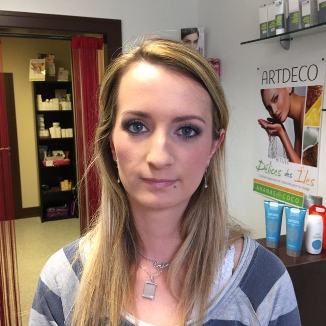 Et voila l'essaie maquillage fais cette après midi je suis contente du résultat et en même temps j'ai l'impression que c'est quelqu'un d'autre dans le miroir lol et comme pour me rassurer lol elle me dis faut s'imaginer avec la coiffure et la robe...