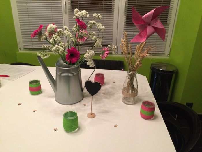 Coucou tout le monde, c'est rare que je poste mais là je suis tellement contente que je veux le partager avec vous. On a fait un essai de centre de table et on est très content du rendu. Notre thème est champêtre. Qu'en pensez-vous ? Bon il n'y ni...