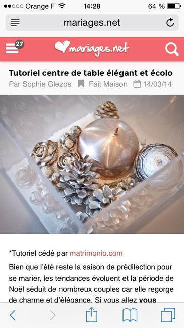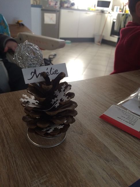 Mon centre de table vois en pensez quoi? Notre thème est l'hiver. Pensez vous que j'argente quelque pommes de pin? Ou que je rajoute des flocons de neige?Les contenant à dragées (dragées qui sera remplacé par du nougat) auront des flocons de neige il...