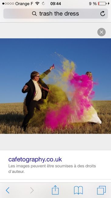 Certaine d'entre vous ont elles ou vont elles faire un trash the dresse pour les photos de leurs mariage? Le photographe qui est un ami nous l'a proposé! Du coup je sais pas trop c'est vrais que j'adore le rendu, c'est super original, mais je pense a...