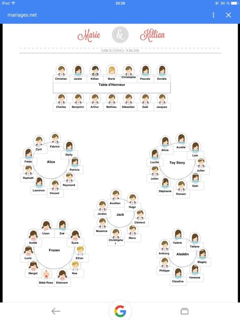 Bonjour tout le monde Voilà je réfléchis un peu à mon plan de table... Non. En fait, il est déjà fait. (Je n'ai pas encore envoyé les faire parts et je n'ai donc la réponse définitive de personne mais j'en ai fait un premier pour voir si...