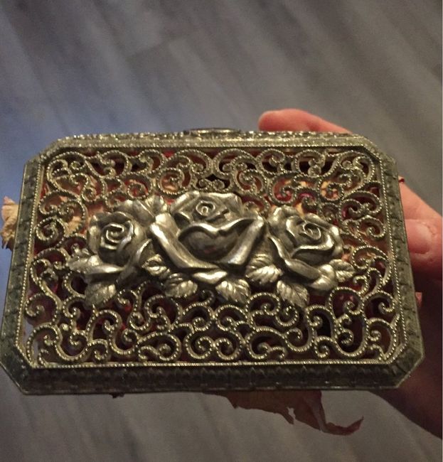 C'est dans une brocante que j'ai déniché mon porte alliance, que je trouve vraiment sublime . J'ajouterai comme sur la photo des roses séchées pour un côté vraiment ancien.