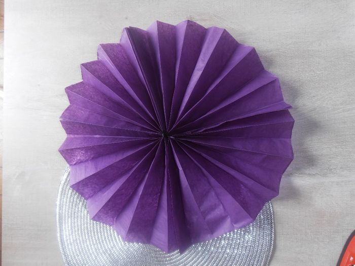 Hello Petit DIY de cet apm, je suis très fière de moi pour une première. Ca me servira de décor pour le mur derrière la table de l'urne, livre d'or... (je vais en faire en blanc, en noir , en violet de différentes tailles) Eventail diy soie