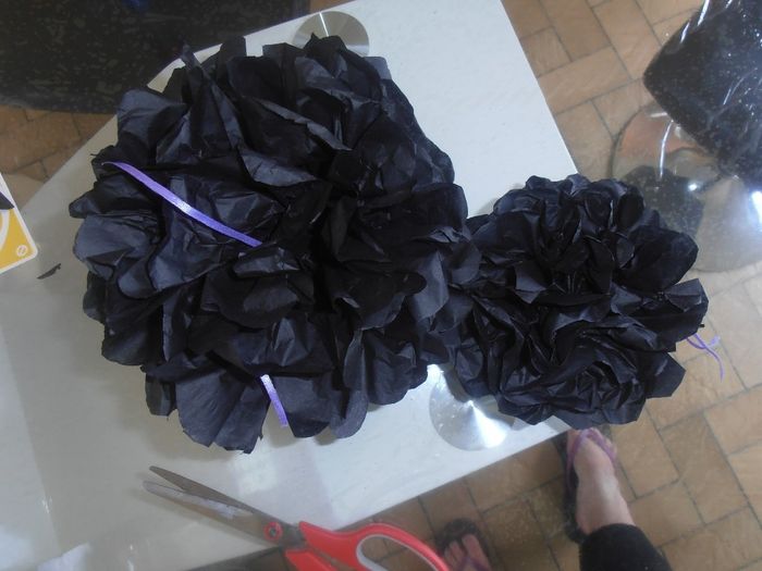 Coucou les brides, voilà des petits essai de pompons et de sachet " larme de joie " pour mouchoir pour le welcome bag. Les pompons serviront à la décoration du vin d'honneur principalement je pense (mais il y en aura des violets et des blanc...