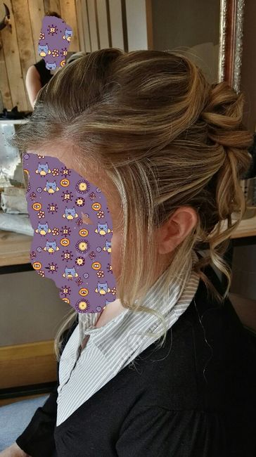 Vendredi grande journée essayage pour moi coiffure et maquillage le matin et robe l'après midi.. Assez satisfaite de ma coiffure, que pensez vous du chignon ??