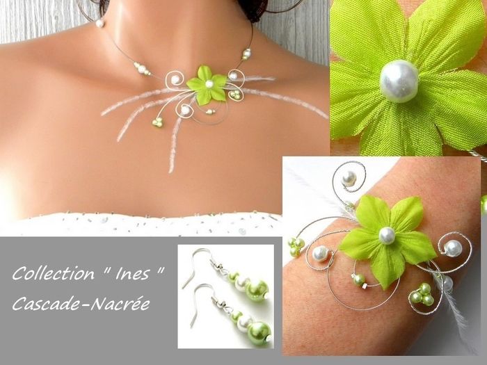 Sachant que les couleurs de notre mariage seront vert anis, blanc et argent, que pensez vous de cette parure?