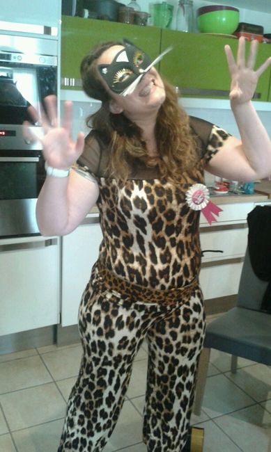 Comme promis je viens vous raconter mon EVJF qui s'est déroulé samedi. Alors mes copines, ma soeur et mes belles soeurs sont venus me chercher vers 14h30 (je connaissais la date mais pas l'heure ), elles m'ont déguisé, ont accroché un boulet a ma...