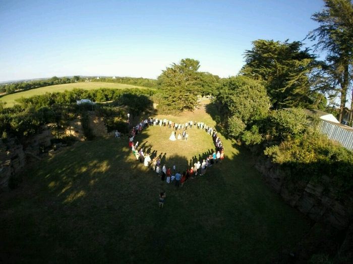 Et c'était juste GÉNIAL! On aurait pas pu rêver mieux, le temps était superbe, cadre magnifique, invités au top, repas délicieux, ambiance de folie, bref le BONHEUR. Je vous mets une petite photo en attendant les autres, pour l'instant j'ai pas vu...