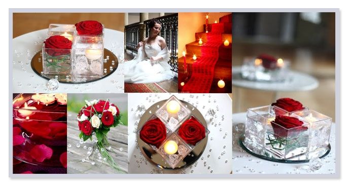 Un menu de mariage écrit sur un miroir, des petits miroirs disposés sur les tables pour un effet lumineux et chic, des miroirs sur les murs de la salle, des noms de tables écrits sur des miroirs... Bref, les idées ne manquent pas et les miroirs...