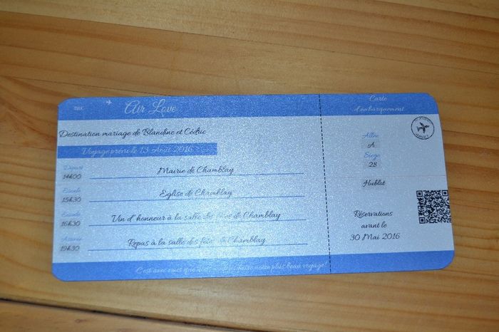 Bonjour, Je viens de recevoir la maquette de notre faire part, vous en pensez quoi? Merci pochette extérieur faire part Pochette intérieur faire part voyage Billet d'avion