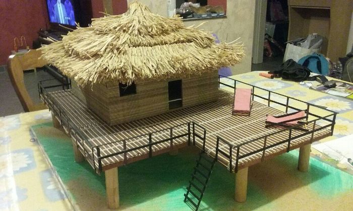 Hello toit le monde... Je n'ai pas encore fini mais voilà la suite de mon urne. J'ai rajouter les rambardes et les transats, le tout est fait maison. Je vais faire une table, j'ai commandé la résine pour faire l'imitation de l'eau, je vais y rajouter...