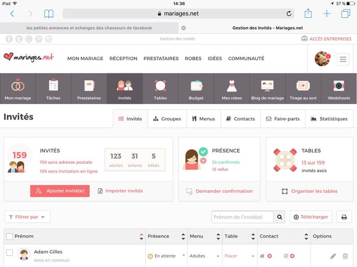 bonjour, après que les invités ou que j'ai moi même confirmé la présence de certains invités, je ne peux pas retrouver un récapitulatif du nombre d'enfants et d'adultes comme pour les invitations. Il n'y a que confirmés et refusés comme pour les...