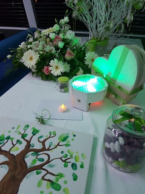 BOnjour les files, Voilà pour la décoration j'ai choisi de mettre des vases martini en centre de tables avec à l'intérieur du sable aux couleurs de notre mariage et une oules de fleurs bleue. Sur la table il y auras une bougie avec un cadre avec 4...