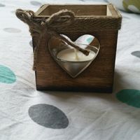 Il y a 3805 joursHello les futures! Voici ma décoration, en peu en vrac.Des bougeoirs en bois coeursMes badges souvenirs fait avec la badge it Banderoles en dentelle