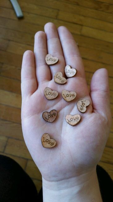 Hello les futures! Voici ma décoration, en peu en vrac.Des bougeoirs en bois coeursMes badges souvenirs fait avec la badge it Banderoles en dentelle