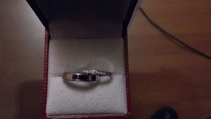 Voilà nos alliances, on en est très content! On les a reçu dans les temps, elles sont parfaites. Il me tarde tellement de pouvoir les mettre à nos doigts Alliances