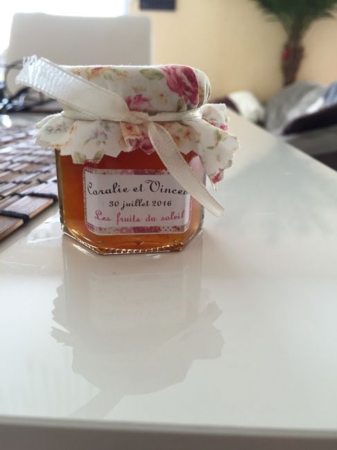 Juste pour vous dire que je suis ravie , et que grâce à mariages.net et à certaines d'entres vous j'ai trouvé ce prestataire formidable : le songe du verger !Donc j'ai reçu aujourd'hui mes confitures abricot et fraise mara des bois , avec étiquettes...