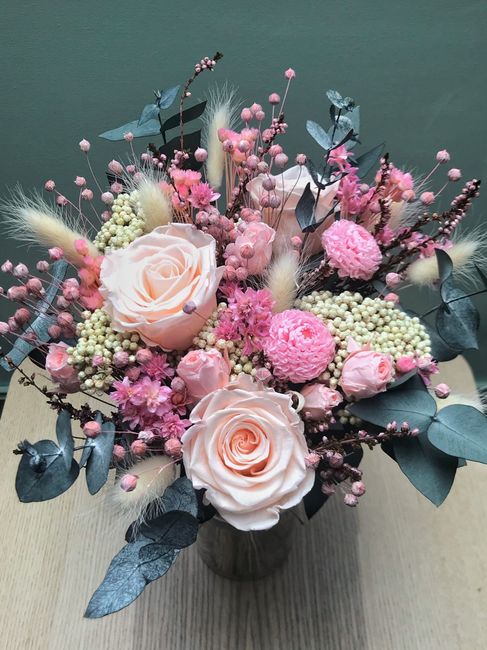 Bonjour! Que pensez-vous d’un bouquet en fleurs stabilisées ? C’est pas la même technique que la fleurs séchées, elles paraissent beaucoup plus fraîches , mais l’idée c’est de pouvoir garder son bouquet après le mariage…En avez-vous déjà vu en...