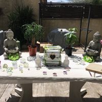Il y a 3626 joursCoucou les filles un petit essai Pour notre table d accueil qu en pensez vous??? Je vous rappelle notre thème ZEN Les bouddhas sont des fontaines avec des LED, bougies seront toutes vertes et beiges....