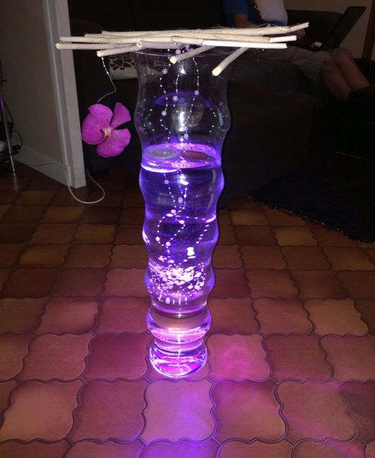 Hello tous le monde, j'ai besoin de vos lumières Je souhaite faire un centre de table constitué d'un vase rempli d'eau avec une structure au dessus de celui-ci. A l'intérieur du vase je vais mettre un rond de led submersible. Jusque là aucun...
