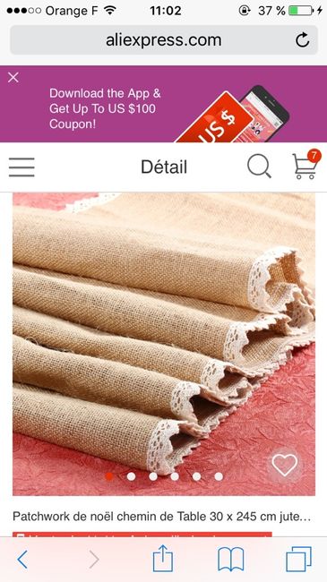 Coucou les futures brides ! Est-ce que l'une d'entre vous aurait commandé ses chemins de table en toile de jute sur le site alliexpress?Quelle est la qualité? Pas de tromperie ?Merci pour vos réponses