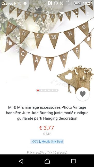 Coucou les filles!! J'ai reçue aujourd'hui ma guirlande de fanions en jute "Just married" commandée sur Amazon. Elle est top je suis contente Je vais l'accrocher au mur entre 2 fenêtres. Notre table et plus précisément nous 2 seront placés juste...