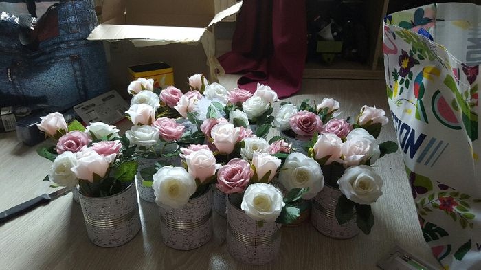 Coucou les filles ! Ça y est j'ai (enfin ) démarrer les premières créations ! J'avais tant d'idées en tête ! Je vous fais partager mes premiers essais ! De gauche à droite bocal pour le candy barCadre avec le numéro des tablesBoîtes de conserve pour...