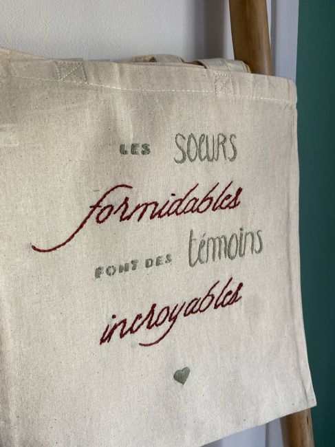 Noël c’était l’occasion pour moi d’annoncer à mes sœurs que je les prends en témoins. J’ai brodé ces deux tote bag pour leur offrir et ça a fait son petit effet ☺️ Voilà des photos qui peuvent donner des idées 😘