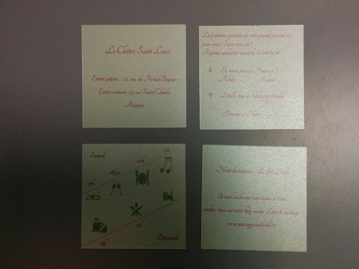 Coucou les filles, Voici nos faire parts: nous les donnerons en main propre. Seulement voilà, la particularité de ces faire-parts ne nous permettent pas de donner à nos invités tous les détails. Les premiers seront donc achetés sur le site Créa...