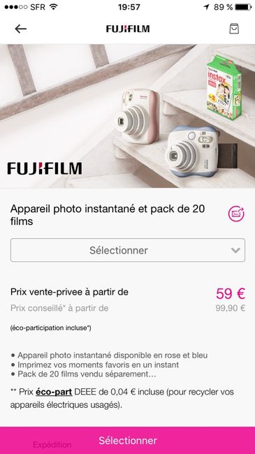 Bonjour les filles, Sur vente privée, vente de Polaroïd fujifilm a 59 euros ! Je viens de commander le bleu avec 3 packs de 20 photos