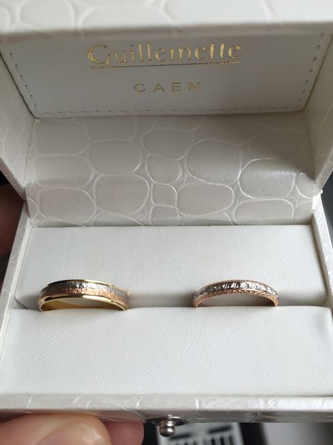 Et voila, nous avons récupéré nos alliances hier. Moi j'en voulais une or rose et blanc, et mon futur du coup a voulu également un peu d'or rose pour qu'elle soit complémentaire à la mienne. Du coup il a les 3 ors, rose blanc et jaune. Je les trouve...