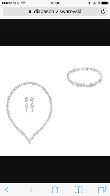 Bonjour les filles, j'ai besoin de vos avis. Voila depuis le début je suis attirée par cette parure, comme de nombreuses mariées d'ailleurs, je suis allé la voir dans la boutique de ma ville, magnifique parure rien à dire. Je fait mon essai de robe...