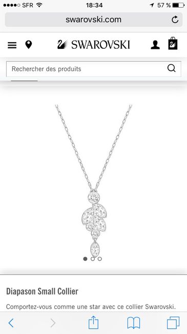 Voici ma parure Swarovski offerte par mon chéri, j'en suis fan !!! J'ai pu l'essayer avec ma robe en plus... Et ça va parfaitement bien dans le style de ma robe !!