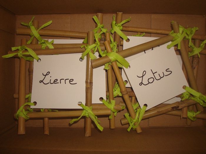 Mon dimanche a été une journée bien remplie avec au programme atelier déco! ça nous a pris toute la journée mais au moins on a bien avancé^^ Je vous montre le travail accompli : les noms des tables livre d'or (très peu de modif) nos noeuds de voiture...