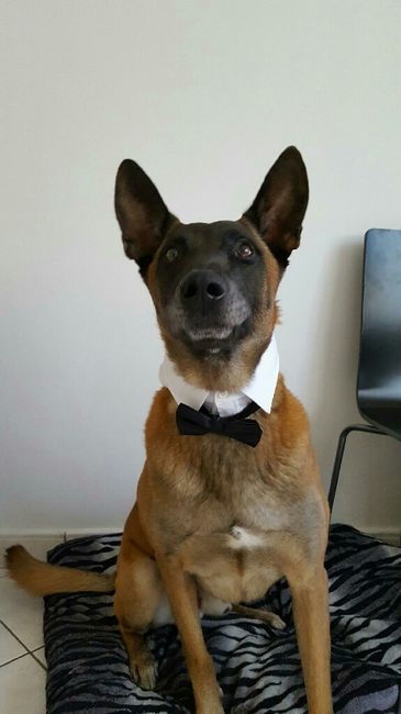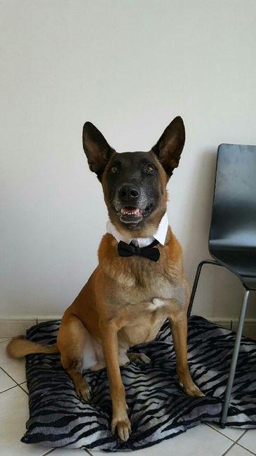 Elle s'appelle Maya... Et est trĂšs heureuse du mariage de ses maĂźtres... Et vous? Vous faites participer vos ptites bĂȘtes Ă poil? đđđđ