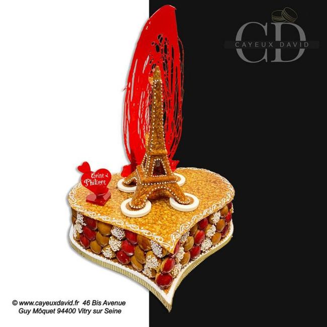 Coucou à toutes ! Petit partage ce soir: Notre pièce montée ! Et elle ne sera pas comme toutes en forme de sapin ... Voici notre inspiration : Il n'y aura pas les cœurs noir et rouge et les inscriptions seront nos prénoms et date ... les mariés en...