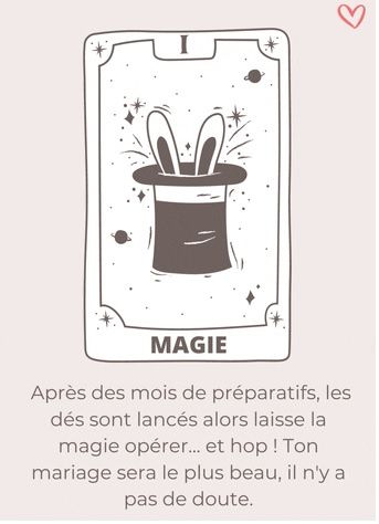 Coucou tout le monde 💜 Merci d'avoir participé jusqu'au bout ! Maintenant qu'on en sait un peu plus sur ton mariage, on va pouvoir tirer les cartes... FAIS UNE CAPTURE D'ÉCRAN DE CE GIF ET PUBLIE LA EN COMMENTAIRE !! 🧐👇 Alors ? Comment s'annonce ton...