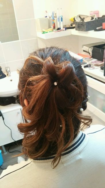 Voilà mon essai coiffure et maquille sont fait . Pour celle qui mon conseiller de faire une très de plus grosse ont à essayer mais sa n'allait pas . Vous en pensez quoi ? Encore 21 jour et sa sera le grand jour hâte d'y être .