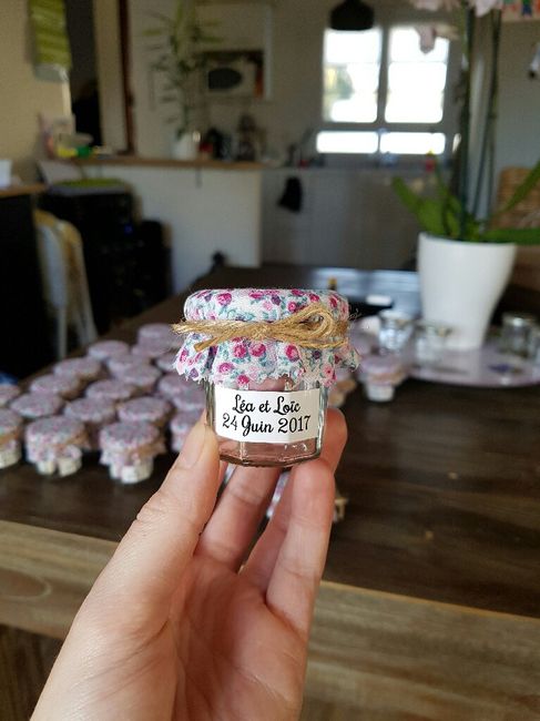 Mes petits pots à dragées pour les femmes sont terminés 😊, les hommes auront des mignonnettes avec dedans du rhum arrangé.