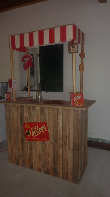 Voilà, le bar bodega terminé. Il faut qu'on aille à la décheterrie pour d'autres palettes... Il reste le bar pour les bieres pressions... Heureusement nous avons le temps ! BAR palettes Bar Palettes