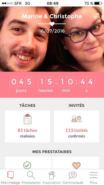 J - 1 mois tout pile pour moi les filles. Encore plusieurs détails non réglés. Tous les invités n'ont pas encore confirmé il en manque 6 en fait lol dernière limite le 1 er juin. Pas de nouvelles de mon traîteur mais il paraît que est normal d'après...