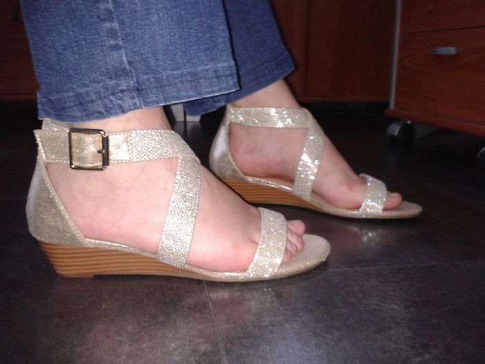 Quelle galère pour trouver ce que l'on veut vraiment je voulais des chaussures jaunes ouvertes avec petit talon mais impossible à trouver surtout que de dernier essayage de la robe était à J-10 je l'ai ai acheté chez Reno en Allemagne (pour celle qui...