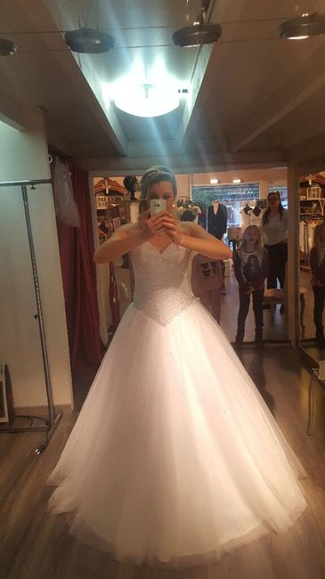 Super contente d avoir essayé ma robe en plus en présence de ma témoin,sa fille et ma fille .😍Pure moment de bonheur j ai même trouvé mes bijoux et ma couronne et fait mon essai coiffure .😁reste les chaussures ..