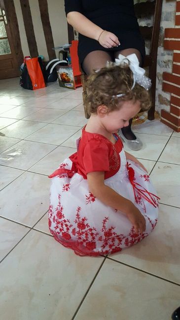 Voici ma poupée avec sa robe pour le mariage elle pleure mais bon après elle voulait plus l'enlever