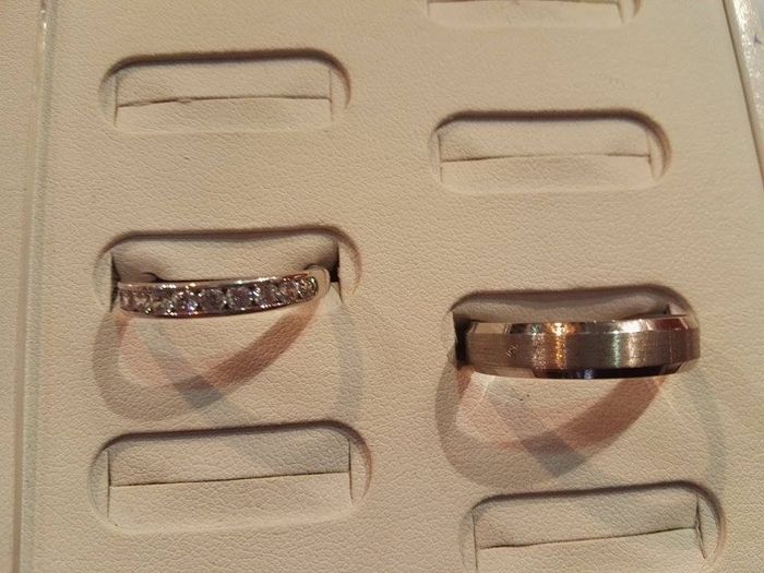 Ca y est, nous avons trouvé notre bonheur au salon du mariage de Rennes. Une belle économie de 40% sur l'ensemble : alliance platine pour mon amoureux et pour moi platine avec demi rail diamants. On les Kiffe!!!! Reste juste à confirmer...