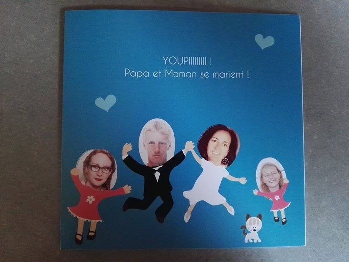 Décidément, je le kiffe mon facteur!!!!! Aujourd'hui surprise : l'échantillon du faire part concocté par nos filles (surtout l'aînée!), on est fier qu'elles contribuent au projet. Faire part Faire part